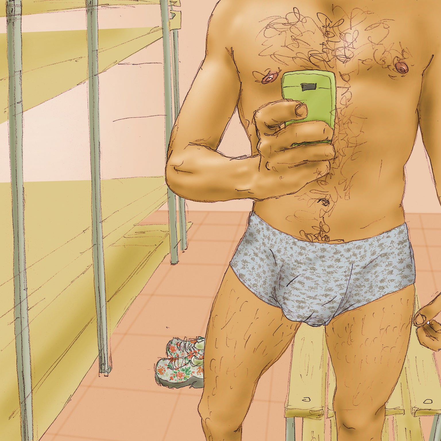 In the "Discreetly yours" series I try to find some romanticism in the pictures of dating app users. The "portraits" follow real profile pictures of guys that don't show their face, keeping their original cut but changing colors and some details. In this way, a kind of romantic feeling emerges.