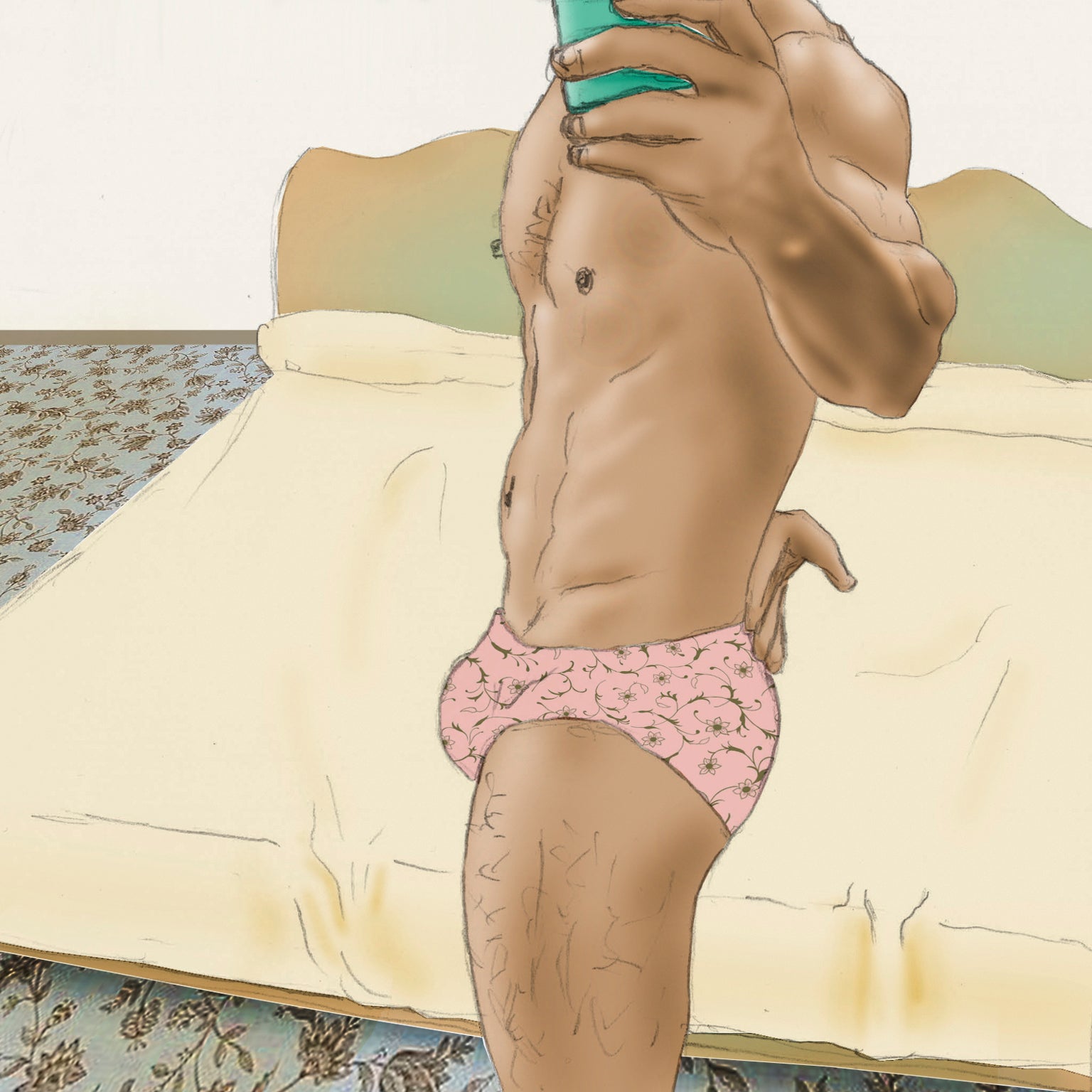 In the "Discreetly yours" series I try to find some romanticism in the pictures of dating app users. The "portraits" follow real profile pictures of guys that don't show their face, keeping their original cut but changing colors and some details. In this way, a kind of romantic feeling emerges.