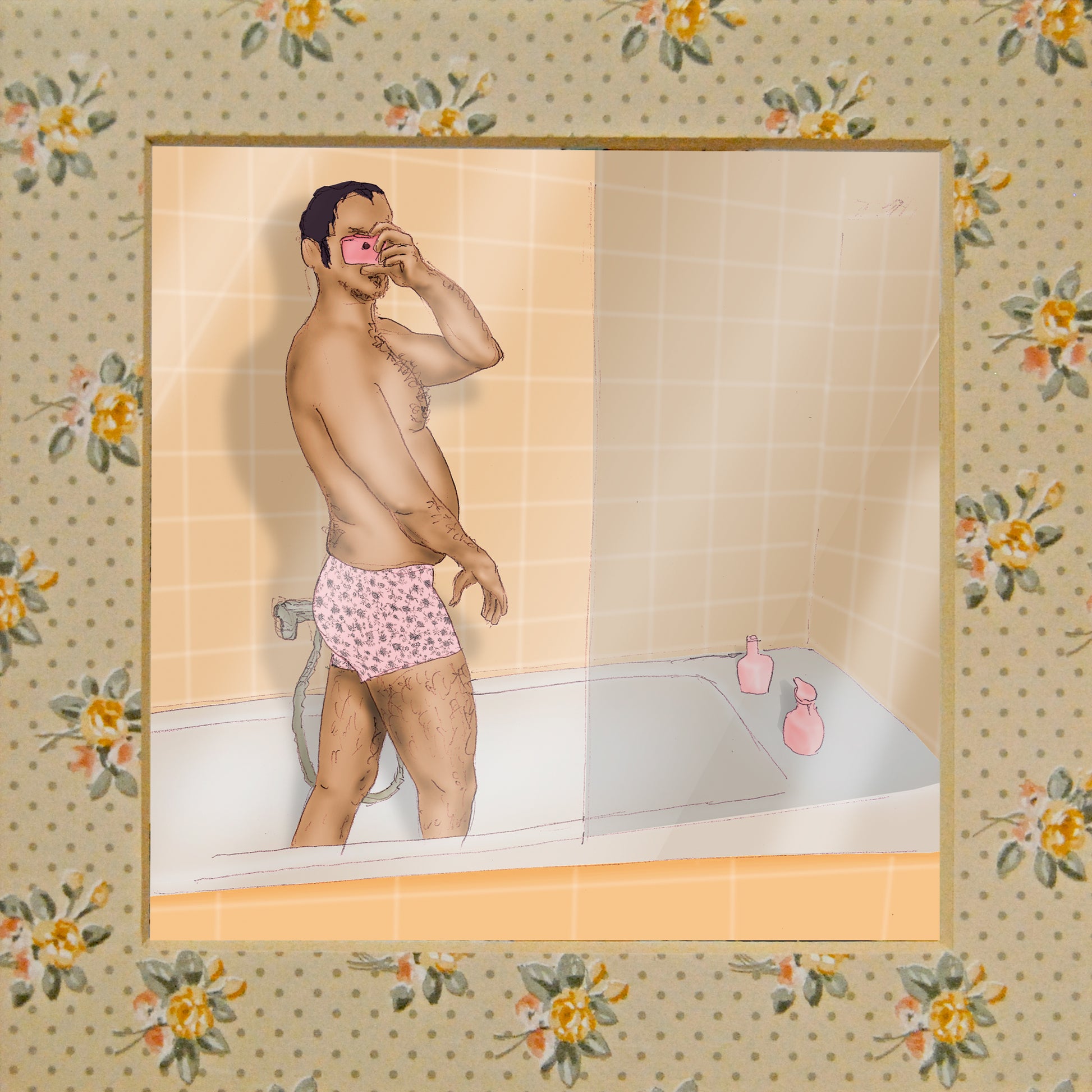 In the "Discreetly yours" series I try to find some romanticism in the pictures of dating app users. The "portraits" follow real profile pictures of guys that don't show their face, keeping their original cut but changing colors and some details. In this way, a kind of romantic feeling emerges.