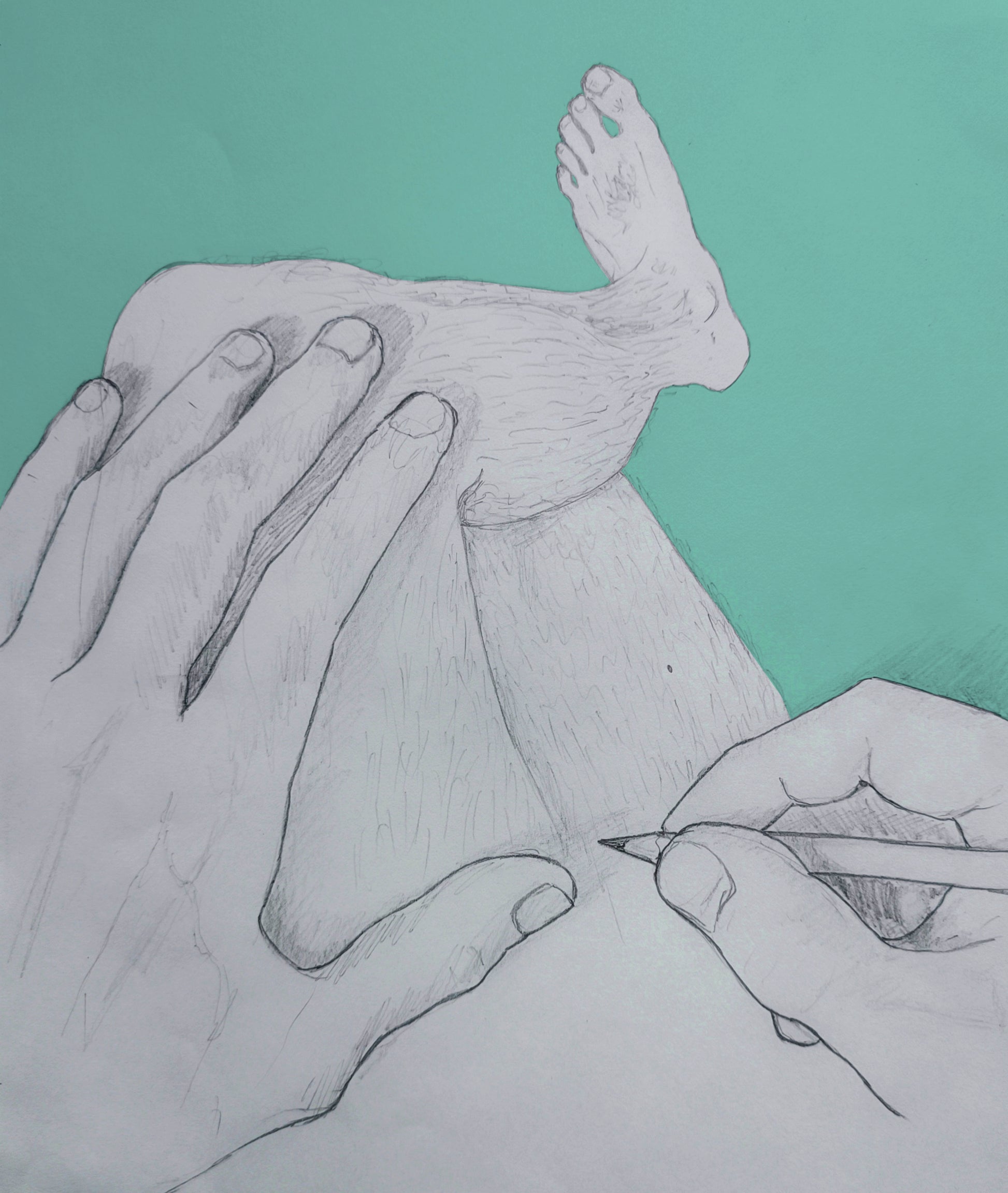 Freehand drawing, pencil and digital colors, fine-art pigment print on watercolor paper.